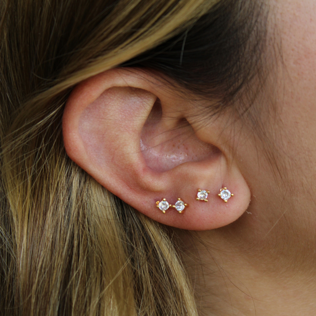Brinco ponto de luz pequeno, com tarraxa. Banho de ouro 18k.